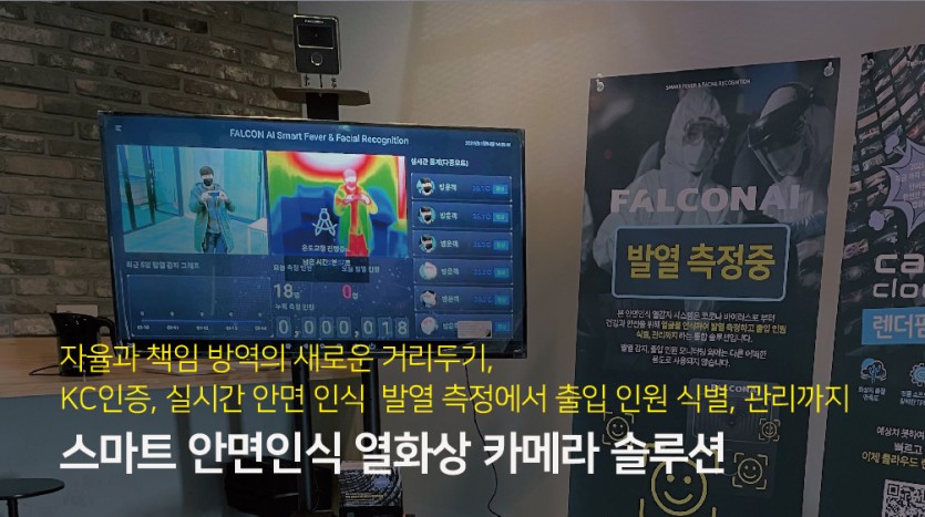 활용한 열화상 카메라, '팔콘에이아이(FALCON AI)'를 선보이며 생활 속 방역 실천에 도움을 줄 예정이다. 0.5초 이내에